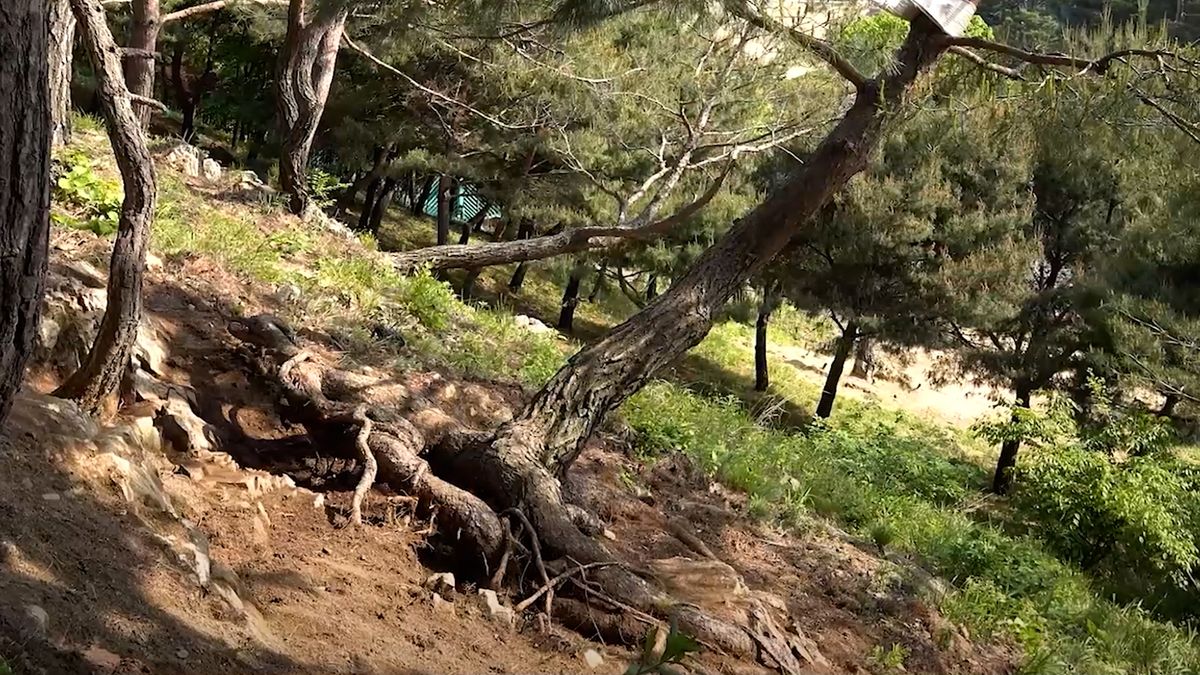 별봉정으로 올라 가는 길, 그리고 정명석 목사가 시무하던 청기와 집 뒤 거친 바위 절벽에 외로이 자리한 나무가 있습니다. 사람 발길조차 쉬 닿지 않는 거친 돌산, 그곳에 뿌리 내린 나무 하나, 처음엔 100년이 넘도록 누구도 눈길 주지 않았던 나무였습니다. 그저 거대한 바위에 의지해 자라다가, 결국 기울어지고 만 소나무. 그런데도 뿌리는, 마치 생의 의지를 품은 듯 거대하고 굳세었습니다. 나무는 넘어졌지만 뿌리는 꺾이지 않았고, 오히려 그 모습에서 이 나무의 숨겨진 사연이 세상에 드러나게 되었지요.