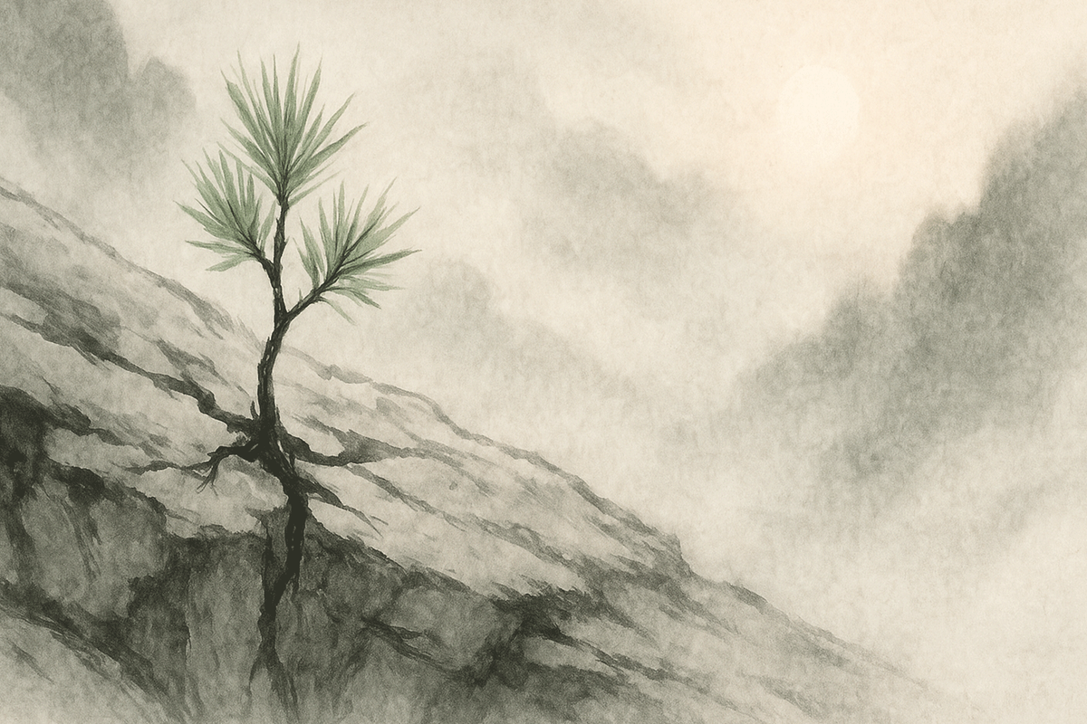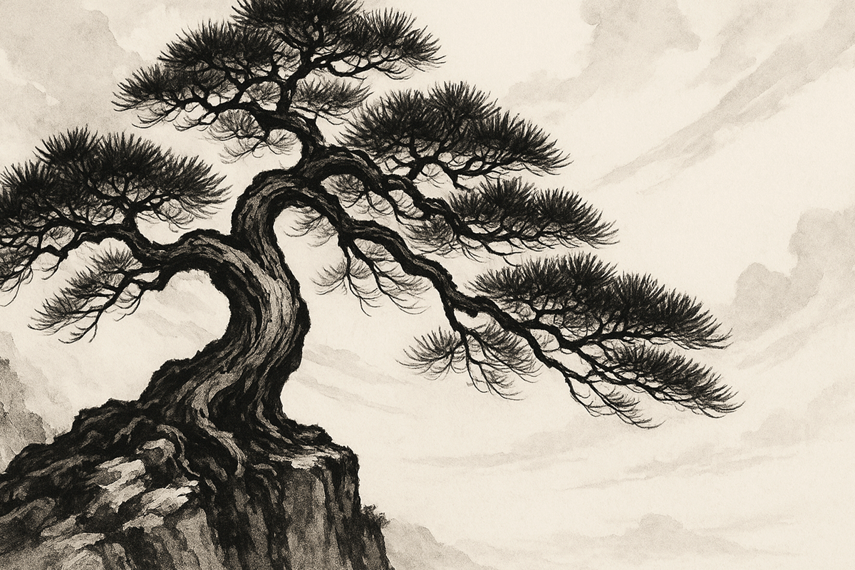 '암반솔'이란 이름 그대로 암반에서 자라난 소나무입니다. 거대한 암반 위에 외롭게 뿌리내린 암반솔은, 극한의 환경에서 자연을 조경사 삼아 자라난 작품입니다. 뿌리를 내릴 흙 한 줌조차 없는 척박한 돌틈 사이, 작은 솔 씨앗이 바람에 실려와 간신히 자리를 잡습니다. 그러나 그 자리는 비바람이 가장 먼저 닿고, 햇빛은 눈부시게 쏟아지며, 물은 가장 마지막에야 스며드는 곳이죠. 살아남기 위해 뿌리는 단단한 암반을 비집고 들어가 미세한 균열을 찾아내고, 오랜 시간에 걸쳐 바위를 뚫고 퍼져나갑니다.